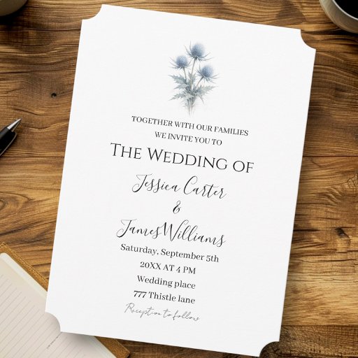 Blue Thistle Scottish Scotland Simple Wedding Invitation