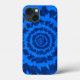 Tie dye print iPhone case with a bulls eye pattern in light and dark blue.