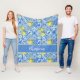 Blue Tile French Country Lemon Pattern Monogram Fleece Blanket
