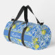 Bring a touch of southern French country charm to your exercise routine with this elegant duffle bag featuring a vibrant French country blue tile pattern accented by lush yellow lemons. The design includes a stylish center band that can be personalized with a name, your initials or a saying, making it a refreshing and custom addition to any sport or workout ensemble.