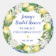 Designed to coordinate with the Jenny's Lemon Collection, this bridal shower sticker features a yellow lemon and white floral wreath. There is a hint of the blue tiles around the edge of the round sticker. The bride's name and bridal shower follows written in a modern and trendy script font. The date completes the text. A small yellow heart adds a touch of romance. All the text is editable.