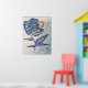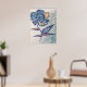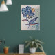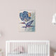 Artistic Watercolor Blue Tile Textured Flower Painting Poster.