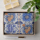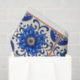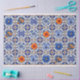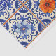 Blue tile with orange and blue flowers, oranges and fruit label decoupage Tissue Paper