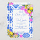 Blue Tiles Bougainvillea lemons elegant wedding Invitation