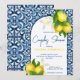 Blue tiles and lemon Amalfi Positano Mediterranean style couples shower invitation template.