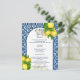 Blue tiles and lemon Amalfi Positano Mediterranean style wedding details enclosure card template.