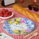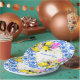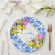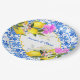 Blue tiles lemon Bougainvillea custom wedding Paper Plate