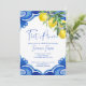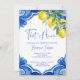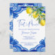 Blue Maiolica tiles lemons Italian bridal shower invitation editable template instant download, Mediterranean themed bridal shower citrus bridal shower invitations