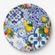 Blue tiles,Sicilian,majolica, mosaic art ,lemon Paper Plate