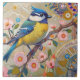 Blue Tit Bird with tuft Pink Floral Spring Flowers Tile