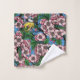Blue tit birds in the blooming cherry tree on blue bath towel set