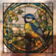blue tit british bluetit birds,green forest woodland,stained glass style art,stain glass woods nature,great outdoors birder spotter,outdoor leafy tree leaves,spring garden backyard wildlife,beautiful sweet little small animals,blue capped birds on branch,cream yellow chickadee bird