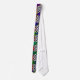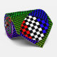 Blue to green rainbow tie with vertical red white and blue on back chequered background cutouts.