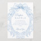 Blue Toile Bow Baby Boy Shower Diaper Raffle Sign Invitation