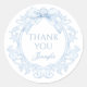 Blue Toile Bow Frame Baby Boy Shower Thank You Classic Round Sticker