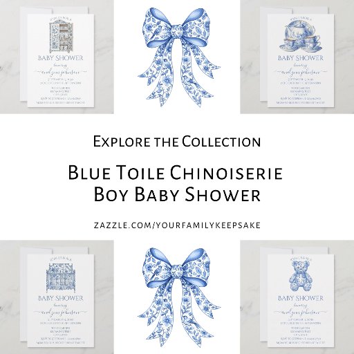 Welcome your little one in classic style with our Blue Toile Tea Set Boy Baby Shower Invitation. Featuring an elegant blue and white toile china and bow coquette pattern. Personalise with your shower details for an adorable keepsake that family and friends will cherish.