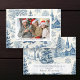 This elegant Christmas card design showcases a beautiful winter landscape in shades of blue. The image features a charming church and snow-covered trees, creating a serene and festive atmosphere. This design is perfect for adding your family photo and a personal message, creating a unique holiday keepsake for friends and family. The classic blue and white colour scheme lends a timeless feel, making it a perfect way to share holiday wishes in style. Personalise it with your favourite photo for a touch of warmth and sentiment.