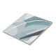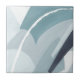 A decorative tile with a modern art design with geometric shapes, in tones of blue and white.