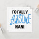 Totally Awesome Nani T-shirts, hoodies, mugs, nani keepsakes, cards, buttons, stickers, and more for the totally awesome grandmother or nani to be with bright blue text with black or white text for light and dark colours t-shirts and gifts.