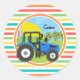 Blue Tractor; Bright Rainbow Stripes Classic Round Sticker
