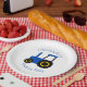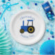Birthday party paper plate tractor design. You can customise this birthday party plate with any text of your choice. Should you require any help with customising then contact us through the link on this page. Blue tractor design personalised birthday party paper plate