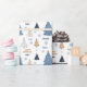 Blue Trees Modern Christmas Name Text Wrapping Paper