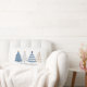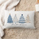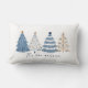 Christmas Holiday Lumbar Pillow with modern simple blue Christmas trees. Easily personalise the text - Kate Eden Art
