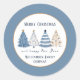 Blue Trees Modern Text Name Christmas Holiday Classic Round Sticker