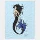 A tribal ink mermaid with blue in her tail set in a blue backdrop.