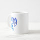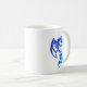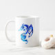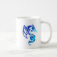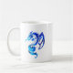 decorative tribal tattoo design of a mythical dragon in surreal blue watercolors on a coffee mug.