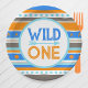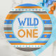 Wild One 1st Birthday Party Paper Plates. Includes a bright fun tribal inspired print in Royal Blue, Baby Blue, Orange, Brown and Tan.
