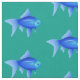 Blue Tropical Fish Pattern on Aqua Fabric