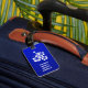 clear vivid colored tag with great lettering. love it! will always know which bag is mine now. not too small, not too large. colors and lettering are perfect.