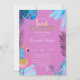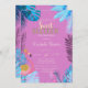 These invitations feature a pink flamingos and blue tropical leaves on pink background. This invitation is easily customised for your event by simply adding your details.