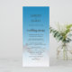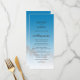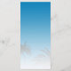 Elegant destination wedding menu with a tropical palm tree design on a bright blue background featuring elegant script and modern typography. The Ibiza blue fades onto a white background. Simply add your wedding details to this stylish tropical beach wedding menu. Exclusively designed for you by Happy Dolphin studio.