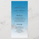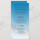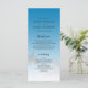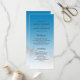 Elegant destination wedding program with a tropical palm tree design on a bright blue background featuring elegant script and modern typography. The Ibiza blue fades onto a white background. Simply add your wedding details to this stylish tropical beach wedding program. Exclusively designed for you by Happy Dolphin studio.