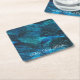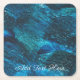 Blue Turqouise Paint Brushstrokes Square Paper Coaster