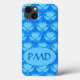 Blue Turquoise Modern Damask Monogram Custom Case-Mate iPhone Case
