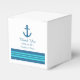 Elegant and classic Nautical Anchor Wedding Favour Boxes with a simple boat anchor and an array of stripes in dark navy blue and turquoise. These nautical beach themed wedding boxes can be easily customised with your wedding details. For more customisation options, click on the Customise It button.