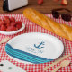Elegant and classic Nautical Anchor Wedding Paper Plates with a simple boat anchor and an array of stripes in dark navy blue and turquoise. These nautical beach themed plates can be easily customised with your wedding details. For more customisation options, click on the Customise It button.