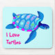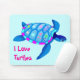 Colourful painted turtle mouse pad, with a sweet cartoon style blue turtle, with his shell all painted pretty.