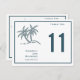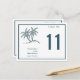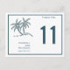 This table number card is clean and simple featuring two blue palm trees and a border around the outside edge in the same blue colour. The bride & groom's names as well as the wedding date are beneath the palms. The table number is clear and readable. The reverse side is the exact design so that it can be seen from both sides. It's perfect for tropical, beach, coastal, seaside or ocean wedding decor.