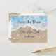 The playful and fun saying, Two Less Fish in the Sea accents this wedding Save the Date Postcard on a background of aqua blue water, beach sand, seashells and starfish. The back of this Save the date Postcard is further decorated with more beach sand, seashells and starfish. If additional coordinating items are needed for your wedding just contact us at prettyfancyinvites@gmail.com with your request.