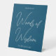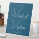Modern typography on blue background for a tabletop sign to encourage putting Words of Wisdom for the graduate at their graduation party.