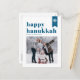 Happy Hanukkah! | Send your holiday wishes with this customisable Hanukkah photo postcard. It features blue retro bold typography, simple snowflakes accent and festive pattern. Personalise by adding names, year and photo. This festive photo Happy Hanukkah postcard is available in various colours and cardstock.