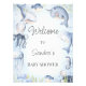 Sweet under the sea themed baby boy's baby shower welcome sign featuring various sea creatures and some seaweed. This boy's under the sea baby shower welcome sign is ideal for someone looking for a under the sea creatures baby shower sign for a baby boy.