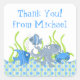 You can personalise the text on these cute and fun blue, green, and white underwater cartoon critters personalised birthday favour tag stickers. To change the text, use the personalise it feature. For more extensive changes to the text, such as changes to the font, font size, font colour, or text placement, use the customise it option. The design features cartoon fish, an octopus, and a crab... with polka dots. Cute and fun! These make great thank you favour tags for goody bags given to kids attending a birthday party.