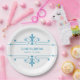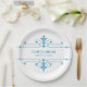 Simple and elegant Fancy Ornamental Wedding Paper Plates in blue and white featuring a sophisticated art deco style ornamental flourish border. Easy to customise, simply add your wedding details in the text fields provided. Click "Customise It" to find more personalisation options.