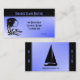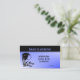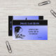 On the front of this two tone blue business card is an island in the sun complete with swaying palm trees and sandy hills. Add the title of your business to the top, then your address and other information you want to include to the centre. At the bottom is more print where you can add your email address or you URL. Be creative and add whatever you like.