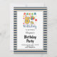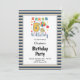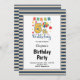 Blue/Vanilla Stripes Framed 5th Birthday Party Invitation